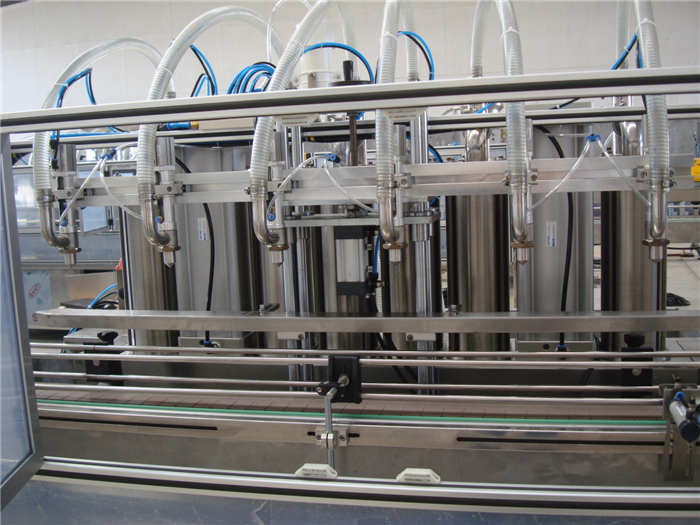 器的瓶口完全吻合,否則輸出報警信號,而且在故障未排除之前,不讓灌裝繼續(xù)進行。容易起泡的物料,設備進行邊灌裝邊提升來減少物料起泡。 最后,灌裝頭在容器到位后能準確下移使灌裝插入瓶口 ,灌裝完畢后,灌裝頭應迅速上移,使容器能順利輸出。